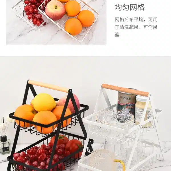 • Multifunctional Shelf Double-layer Storage Holder Wrought Iron Outdoor Camping Fruit Food Basket Kitchen Home Organizer Display Rack