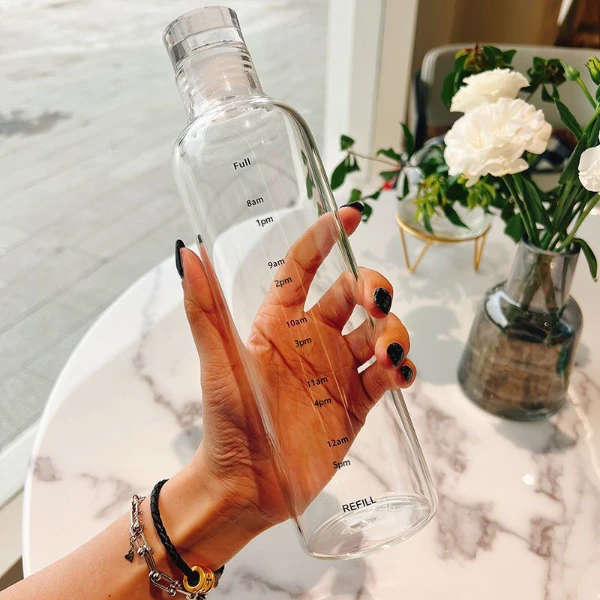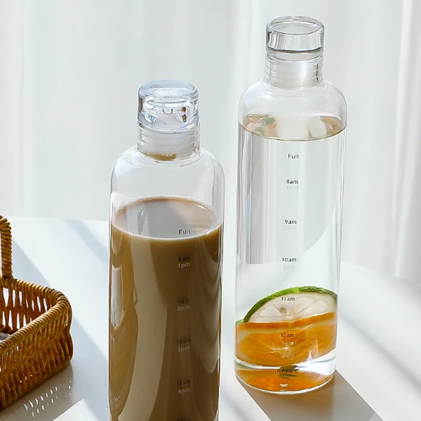- Transparent Glass Bottle 500ml Large Capacity food grade plastic Water Bottle with Time Marker Water Drink Milk Juice Travel Cup